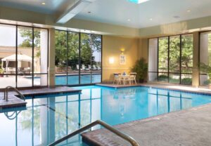 Pool at Omaha Marriott – Indoor and Outdoor pools are connected.